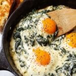 Keywords: Eggs Florentine, baked eggs, spinach recipes, breakfast casserole, brunch recipe, creamy spinach eggs, parmesan baked eggs