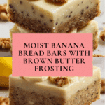 Banana bread bars are a delicious twist on the classic banana bread, perfect for sharing or enjoying as a portable snack. These moist, flavorful bars are topped with a rich brown butter frosting that adds a nutty, creamy finish. Whether for breakfast or dessert, they’re sure to please banana lovers.