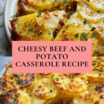 This comforting Beef and Potato Casserole combines savory ground beef with tender slices of potato, layered and baked in a creamy, cheesy sauce. Perfect as a hearty family dinner, this casserole features a blend of cheddar and mozzarella cheeses for extra flavor and a golden crust.