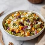 This Best Fall Harvest Orzo Salad is a vibrant and hearty dish that combines roasted butternut squash, shaved Brussels sprouts, and thinly sliced red onions with tender cooked orzo. Tossed in a luscious maple balsamic vinaigrette and finished with creamy goat cheese, it captures the essence of autumn flavors in a refreshing, nutritious salad perfect for seasonal meals or entertaining.