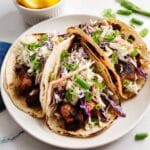 Blackened Seared Ahi Tuna Tacos offer a vibrant fusion of bold spices and fresh flavors. Perfectly seared tuna meets a zesty cumin lime coleslaw, all wrapped in warm flour tortillas for a stunning and delicious meal.