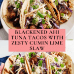 Keywords: Ahi Tuna Tacos, Blackened Tuna, Seared Tuna, Tuna Tacos, Spicy Tuna, Cabbage Slaw, Easy Taco Recipe
