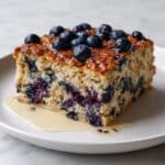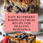 This Blueberry Baked Oatmeal is a warm and wholesome breakfast option combining rolled oats, fresh or frozen blueberries, and gentle sweetness from maple syrup. Baked to golden perfection, it offers a tender yet structured texture, making it a comforting and nutritious start to your day.