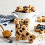 Delicious and healthy homemade blueberry dog treats made with peanut butter, oats, and dried blueberries. These treats are easy to prepare and baked to a perfect crunch, making them a nutritious snack your furry friend will love.