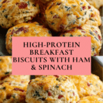 These Breakfast Protein Biscuits are a delicious and hearty way to start your day. Packed with protein-rich Greek yogurt, eggs, ham, cheese, and spinach, they offer a perfect balance of flavor and nutrition. Ideal for busy mornings or meal prep, they bake up golden, fluffy, and satisfying.