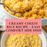 This Cheesy Rice recipe delivers creamy, flavorful comfort food with tender long grain white rice cooked in a rich mixture of chicken broth, whole milk, butter, and sharp cheddar cheese. Enhanced with sautéed onions and mild paprika, it’s a perfect side dish for a variety of meals and easy to prepare on the stovetop.