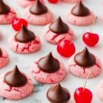 Delight in these Cherry Blossom Cookies, featuring a tender, buttery dough infused with maraschino cherry juice and almond extract, studded with chopped maraschino cherries, and topped with a classic Hershey’s Kiss. These cookies offer a perfect balance of sweetness and a festive cherry flavor, ideal for any occasion or holiday treat.