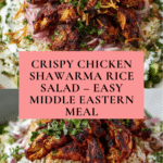 Keywords: Chicken Shawarma, Crispy Rice Salad, Middle Eastern Recipe, Tahini Dressing, Grilled Chicken, Healthy Dinner