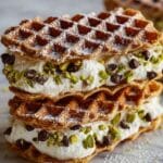 Keywords: Chocolate Cannoli, Pizzelle Sandwiches, Ricotta Filling, Mascarpone Dessert, Italian Cookie Sandwich, No-Bake Dessert, Pistachio Dessert