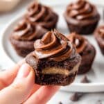 - Frost brownies and serve: Once the brownie bites are fully cooled, pipe or spoon the chocolate caramel frosting onto each mini brownie. Serve and enjoy!
