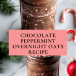 Delicious and refreshing Chocolate Peppermint Overnight Oats made with creamy Greek yogurt, rich cocoa powder, and a hint of peppermint extract, perfect for a quick and festive breakfast or snack.