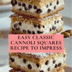 These Classic Cannoli Squares bring the irresistible flavors of traditional cannoli into an easy-to-make dessert bar. Featuring a creamy ricotta and chocolate chip filling sandwiched between flaky pie crusts, these squares deliver that perfect balance of sweetness and texture, sure to impress your family and guests.