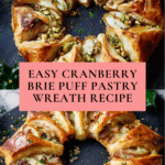 Keywords: cranberry wreath, brie cheese appetizer, puff pastry recipe, holiday appetizer, festive wreath, easy party food