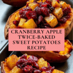 Keywords: twice-baked sweet potatoes, cranberry apple filling, fall recipe, holiday side dish, Thanksgiving side, baked sweet potatoes, seasonal vegetables