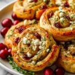 Keywords: cranberry cream cheese pinwheels, puff pastry appetizers, feta herb pinwheels, holiday appetizers, easy party snacks, savory pinwheels