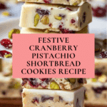 Cranberry Pistachio Shortbread Cookies are a festive holiday treat combining buttery, tender shortbread with tart dried cranberries, crunchy pistachios, and a hint of orange zest. Finished with a smooth white chocolate drizzle, these cookies are easy to make yet look impressively fancy—perfect for gifting or holiday parties.