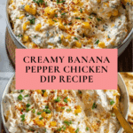 This Creamy Banana Pepper Chicken Dip is a flavorful and comforting appetizer perfect for gatherings or game day. Combining tender shredded chicken with tangy banana peppers and melted cheeses, it offers a delightful balance of creamy and mildly spicy flavors that everyone will love.