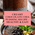 This Creamy Chocolate Chia Pudding is a healthy, delicious, and easy-to-make dessert or snack. Made with chia seeds, unsweetened cocoa powder, and almond milk, it is naturally vegan, gluten-free, and packed with fiber and protein. The pudding thickens overnight in the refrigerator, delivers a rich chocolate flavor, and can be topped with fruits, nuts, or yogurt for added texture and taste.