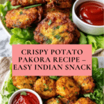 Crispy Potato Pakoras are a delicious Indian snack featuring tender spiced potatoes coated in a light batter and fried to golden perfection. These savory fritters make a perfect appetizer or teatime treat.