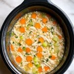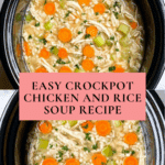 Keywords: Crockpot chicken soup, chicken and rice soup, easy crockpot recipes, slow cooker soup, comfort food, hearty soup