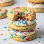Crumbl Birthday Cake Cookies are soft, buttery, and packed with the nostalgic flavor of cake batter. Topped with a creamy cake batter cream cheese frosting and sprinkles, these cookies are perfect for any celebration or a sweet treat anytime.
