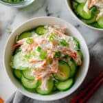 Keywords: cucumber salad, crab meat salad, Japanese salad, no-cook salad, summer salad, imitation crab recipe