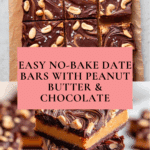 Keywords: date bars, peanut butter bars, no-bake dessert, chocolate date bars, healthy snack, Medjool dates, peanut butter chocolate bars