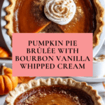 This Delicious Pumpkin Pie Brûlée with Bourbon Vanilla Whipped Cream offers a perfect blend of creamy pumpkin filling infused with warm spices and rich bourbon, all nestled in a flaky homemade pie crust. Topped with a decadent brûléed sugar crust and accompanied by a luscious bourbon vanilla whipped cream, this pie elevated classic pumpkin dessert to impressive gourmet levels—ideal for holiday celebrations or cozy autumn gatherings.