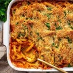 Keywords: chicken parmesan, dump and bake, easy chicken casserole, one dish meal, pasta bake, whole wheat pasta, cheesy chicken bake