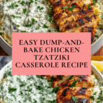 This Dump-and-Bake Chicken Tzatziki Casserole is a simple, flavorful one-dish meal inspired by Greek flavors. Tender chicken pieces are combined with fresh vegetables, seasoned with oregano, and baked with creamy Tzatziki sauce for a delicious, healthy dinner option. Topped with crumbled feta cheese, this casserole is both satisfying and easy to prepare, making it perfect for busy weeknights.