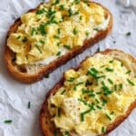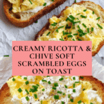 This easy 6-ingredient egg and ricotta toast is a creamy, comforting breakfast or brunch option. Soft scrambled eggs are enriched with ricotta cheese and fresh chives, then served on toasted sourdough for a simple yet satisfying dish.