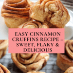 These Easy Cinnamon Cruffins combine the flaky layers of croissants with the shape and convenience of muffins. Made with refrigerated crescent roll dough, cinnamon sugar, and butter, they are a delicious, quick treat perfect for breakfast or dessert. Crispy on the outside, tender and buttery on the inside, these cruffins are baked in a muffin tin for an impressive presentation and easy serving.