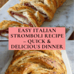 This Easy Italian Stromboli recipe combines layers of savory deli meats, creamy ricotta, and provolone cheese wrapped in a braided pizza dough and baked to golden perfection. Perfect for a flavorful appetizer or a satisfying meal, it pairs wonderfully with warm marinara sauce.