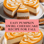 Keywords: pumpkin cheesecake, pumpkin swirl cheesecake, fall dessert, cream cheese dessert, easy cheesecake recipe