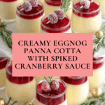 Keywords: Eggnog Panna Cotta, Cranberry Sauce, Holiday Dessert, Festive Dessert, Winter Dessert, Panna Cotta Recipe, Spiked Cranberry Sauce