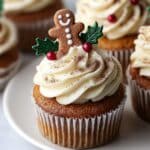 - Decorate: Enhance the festive look by topping cupcakes with mini gingerbread cookies, holly decorations, edible red berries, gold sprinkles, or a light dusting of cinnamon or powdered sugar for a snowy effect.