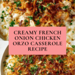 Keywords: French Onion Chicken, Orzo Casserole, Chicken Casserole, Caramelized Onion, Comfort Food, One-Pot Meal