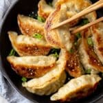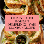 Fried Korean Dumplings, or Yaki Mandu, are crispy pockets filled with a flavorful mix of ground pork and stir-fried vegetables. These golden dumplings are perfect as a snack or appetizer and are delicious with or without dipping sauce.