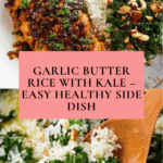 Keywords: garlic butter kale rice, kale recipe, garlic rice with kale, garlic butter rice, marinated kale rice, easy side dish, one-pot rice