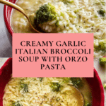 Keywords: Garlic broccoli soup, Italian broccoli soup, broccoli and orzo soup, garlic soup, healthy broccoli soup, easy broccoli soup recipe