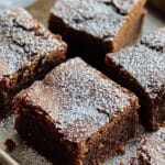 6. Cool and Finish: Remove the brownies from the oven and allow them to cool completely in the pan. Once cooled, dust the top generously with confectioners’ sugar, then cut into squares and serve.