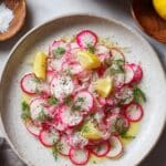 This Gordon Ramsay Radish Salad is a vibrant, refreshing dish that’s quick to prepare and full of bright flavors. Thinly sliced radishes are combined with lemon, Parmesan, and fresh dill for a light salad that works perfectly as a side or starter.