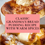 Grandma’s Bread Pudding is a classic, comforting dessert made with day-old challah bread soaked in a rich custard of eggs, milk, and warm spices, then baked to golden perfection. This nostalgic treat combines creamy textures and fragrant flavors of vanilla, nutmeg, and cinnamon for an irresistible homemade dessert perfect for any occasion.