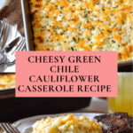 Keywords: Green Chile Cauliflower Casserole, low carb casserole, cheesy cauliflower bake, easy casserole, gluten free casserole, ketogenic casserole