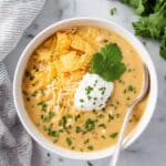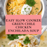 Keywords: green chile chicken enchilada soup, slow cooker soup, easy chicken soup, Tex-Mex soup, creamy chicken soup, enchilada sauce soup, healthy chicken soup