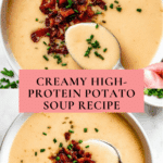 Keywords: High-protein potato soup, creamy potato soup, vegetable soup, comfort food, cheddar cheese soup