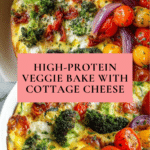 This High-Protein Veggie Bake with Cottage Cheese is a wholesome and delicious casserole packed with fresh vegetables and rich cottage cheese. It combines the creaminess of cottage cheese and eggs with a medley of colorful veggies like broccoli, bell pepper, zucchini, cherry tomatoes, spinach, and red onion, baked to golden perfection with a cheesy mozzarella topping. Ideal for a nutritious breakfast, lunch, or dinner, this easy-to-make dish is both satisfying and healthy.