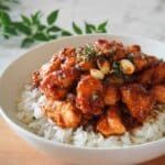 Honey Butter Chicken is a deliciously crispy skillet-cooked dish featuring tender bite-sized chicken thighs coated in a light cornstarch and flour mixture. The chicken is pan-fried until golden and crispy, then tossed in a glossy honey butter sauce flavored with garlic, soy sauce, and rice vinegar. Garnished with fresh parsley, this dish balances sweet, savory, and tangy flavors to create a perfect comfort meal that’s quick and easy to prepare.