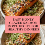 This Honey Glazed Salmon Bowl is a healthy and delicious meal featuring tender, oven-baked salmon fillets brushed with a sweet honey glaze. Served over nutty brown rice and fresh, crunchy alfalfa sprouts, this dish offers a perfect balance of protein, grains, and greens for a wholesome and satisfying bowl.