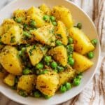 Bombay Potatoes and Peas is a vibrant Indian-inspired dish featuring tender baby Yukon Gold potatoes cooked with fragrant spices and sweet green peas. It’s a comforting, flavorful side that pairs beautifully with a variety of main courses or can be enjoyed on its own.